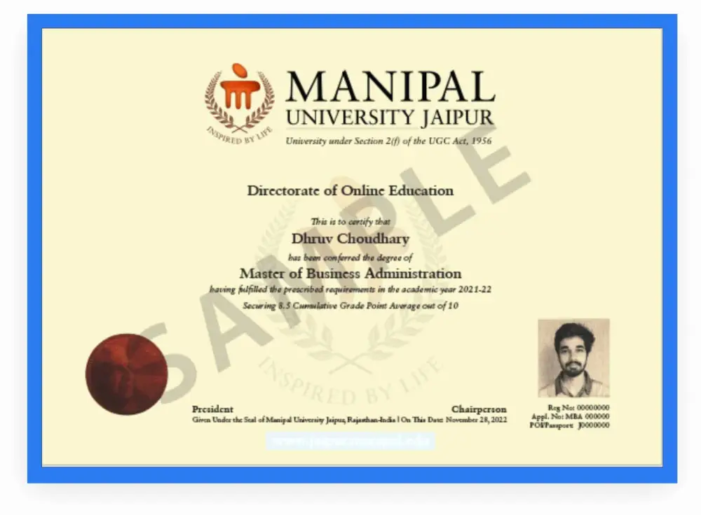 Manipal Jaipur University was established in 2011. It has approval from UGC and NAAC A+ accreditation institutions and is recognised for its commitment to delivering high-quality online courses. Manipal University Online offers various undergraduate and postgraduate programs across multiple disciplines, such as Management, Commerce, and Arts.